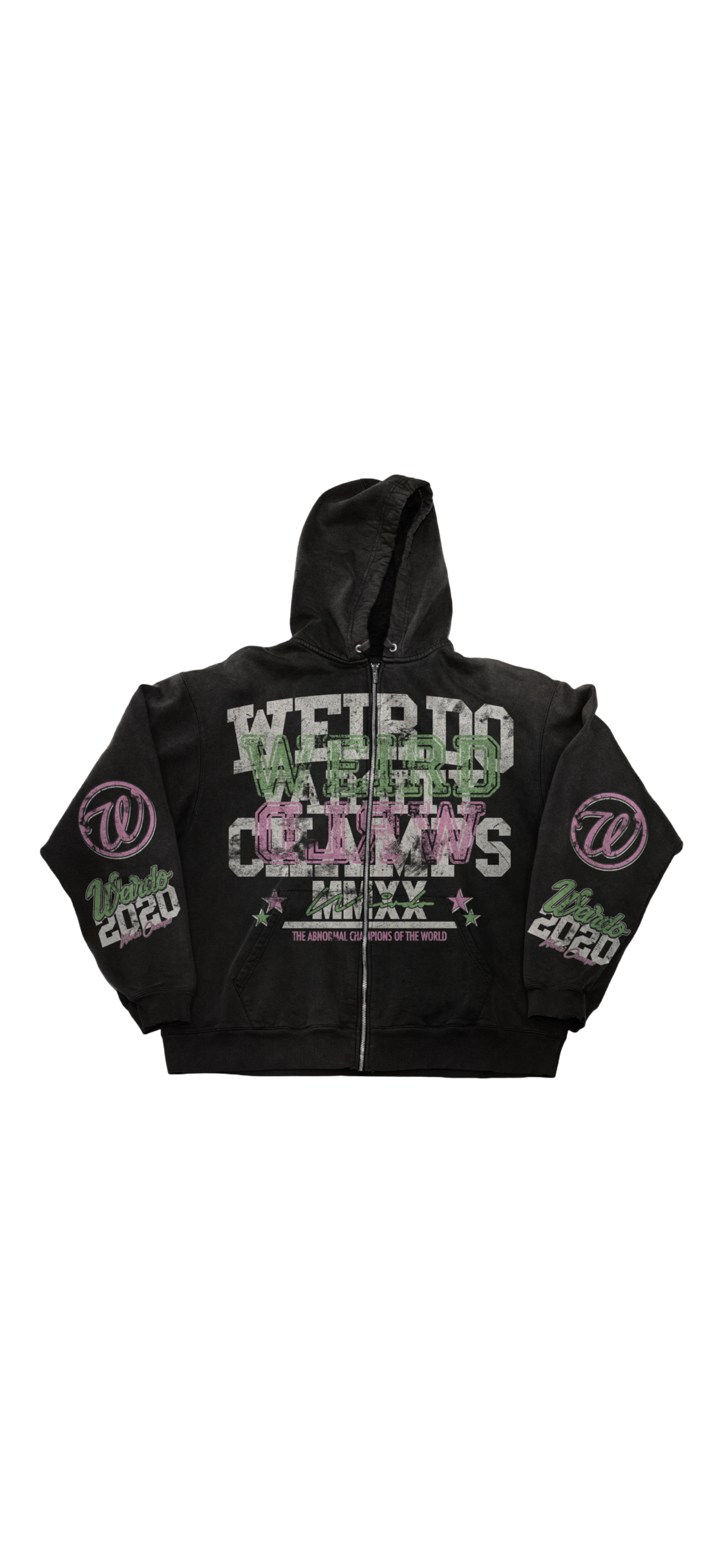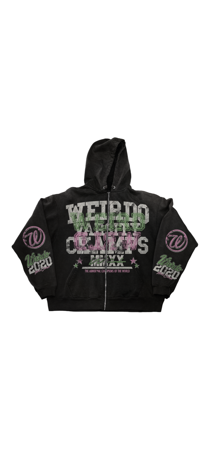 Screen print all over zip up front and sleeves